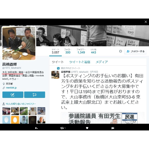 た、大変です有田芳生大先生!先生の盟友、自称男組組長の添田充啓容疑者(43)が逮捕されました!是非先生の国会での釈明が聞きたいです。