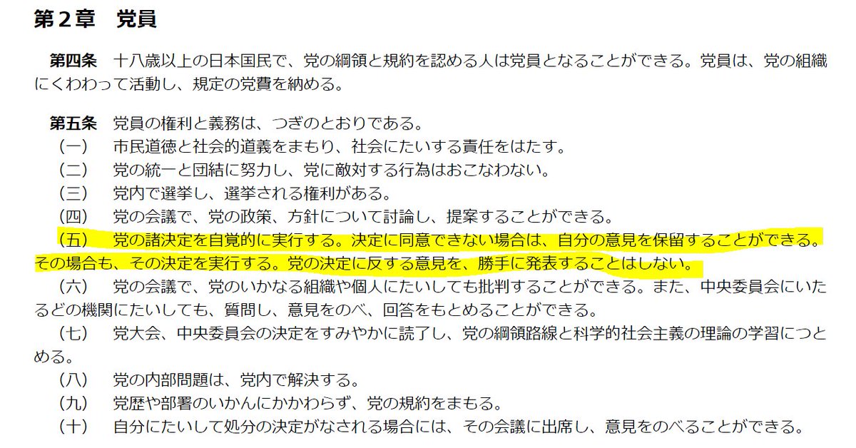 「党の決定に反する意見を、勝手に公表することはしない。」