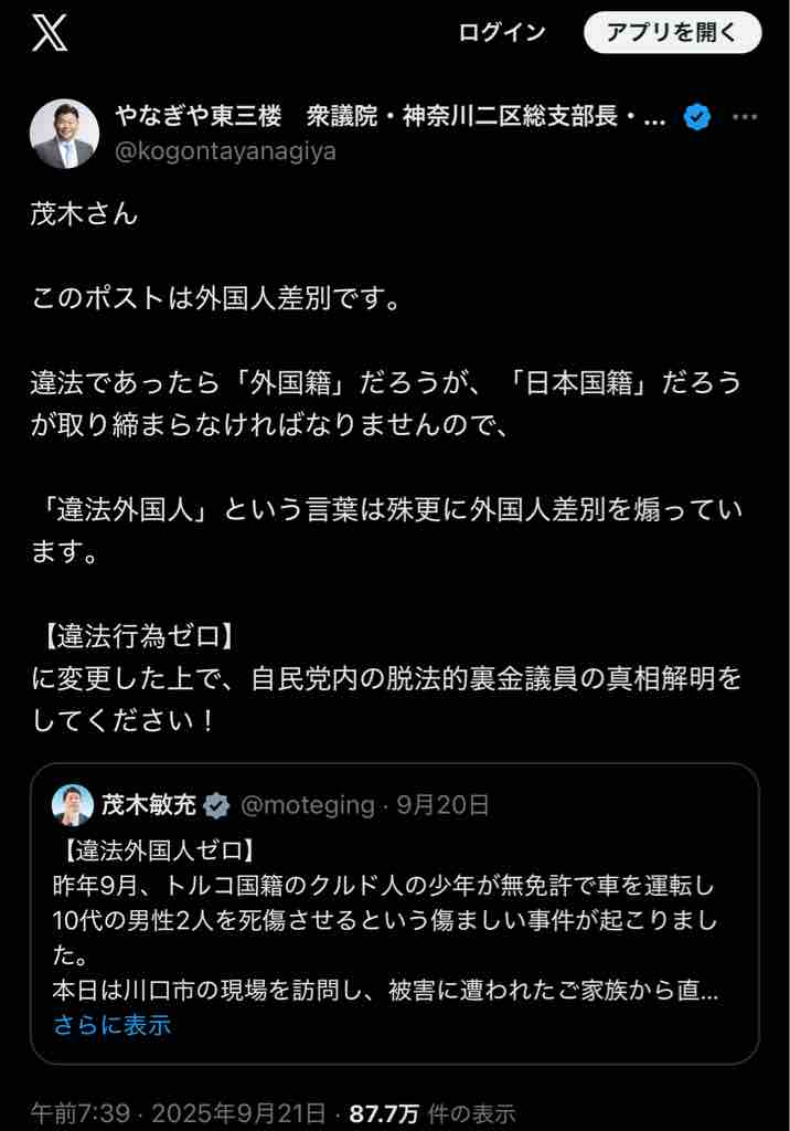 引用元: ・【炎上】 立憲民主党 「『違法外国人ゼロ』は差別」 → [593349633]